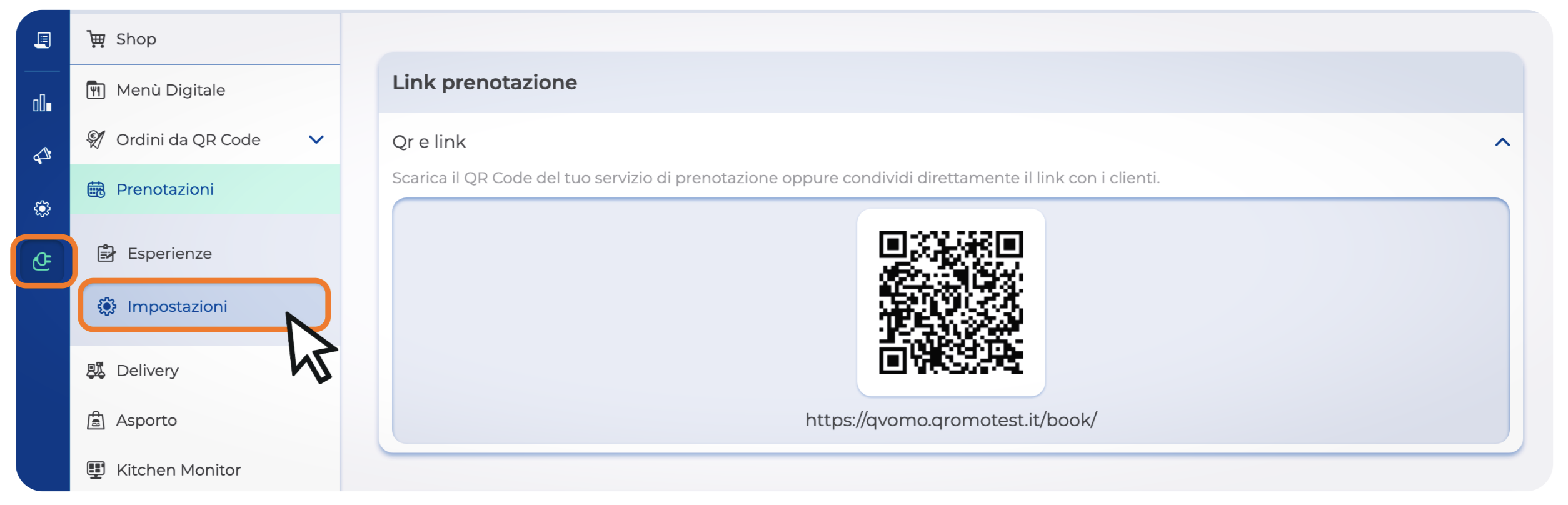 Per trovare il QR Code da scannerizzare apri la sezione Plugin. Quindi entra in Prenotazioni → Impostazioni.