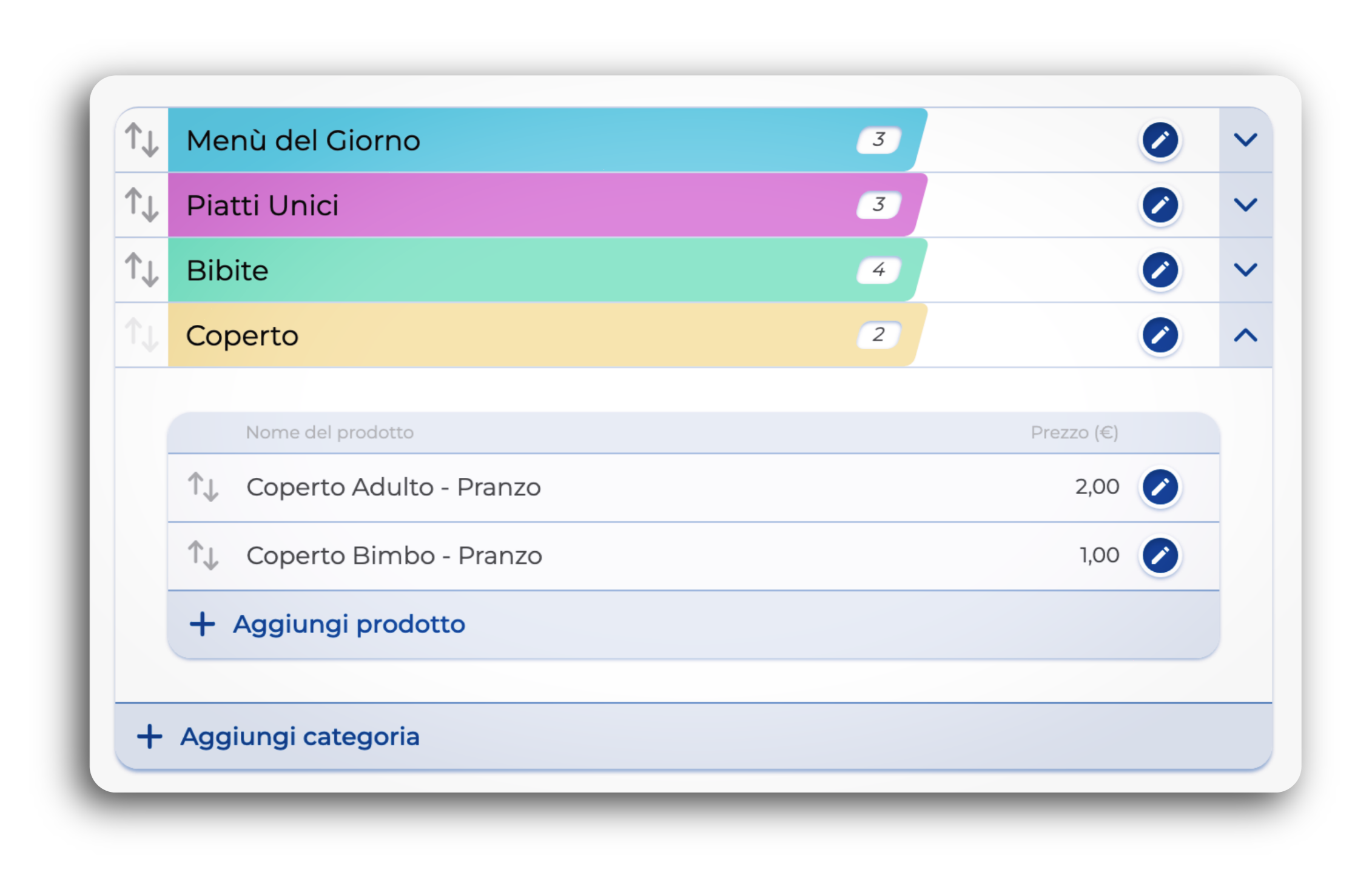 In questo modo chi prende le comande, all’interno del menù selezionato (ad esempio pranzo), avrà a disposizione delle scorciatoie direttamente nel riepilogo dell’ordine.
