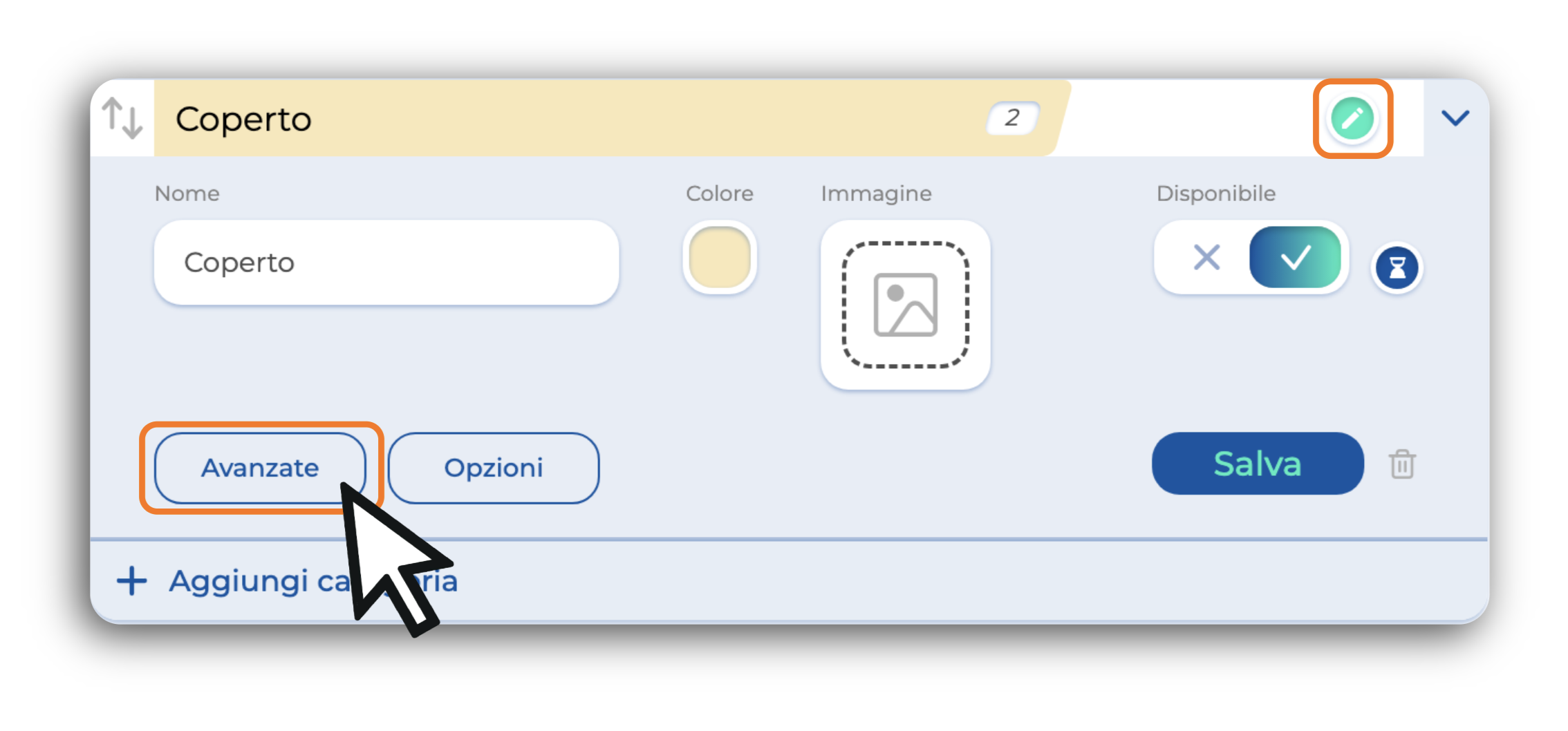 Se l’impostazione classica dei coperti non è sufficiente perché durante la giornata hai esigenze diverse (ad esempio coperti differenti a pranzo e a cena), puoi inserire un bottone dedicato.