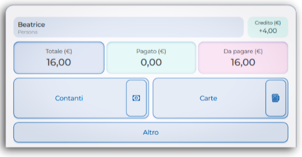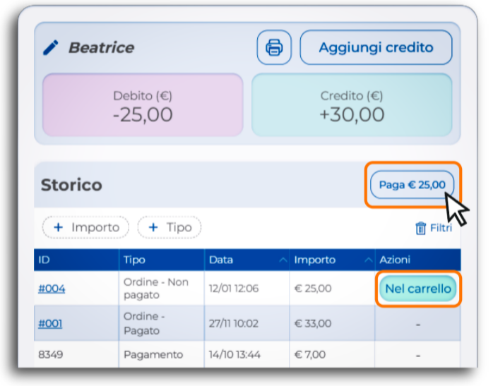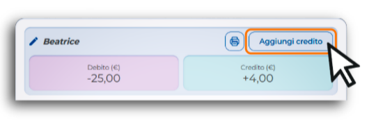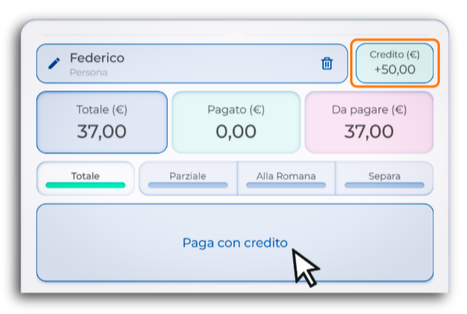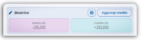 Puoi associare un valore economico direttamente all'anagrafica di un utente, trasformando un resto o un sospeso in un saldo disponibile per acquisti futuri.