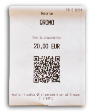 Stampa il credito appena aggiunto per consegnare al cliente la sua copia con il QR Code che riporta al suo saldo aggiornato.