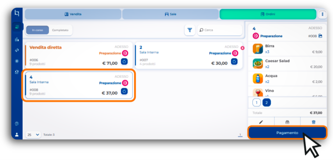 Ipotizziamo di aver già mandato in preparazione un ordine da saldare: