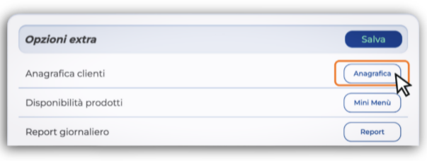 1. Nella sezione operativa apri le opzioni extra e seleziona il bottone accanto ad Anagrafica Clienti.