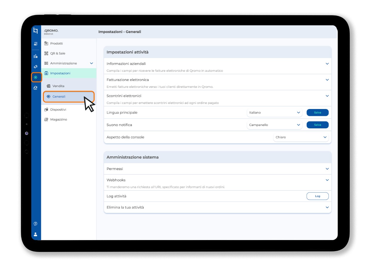 1. Seleziona l'icona "⚙️" per aprire le Impostazioni → Generali.