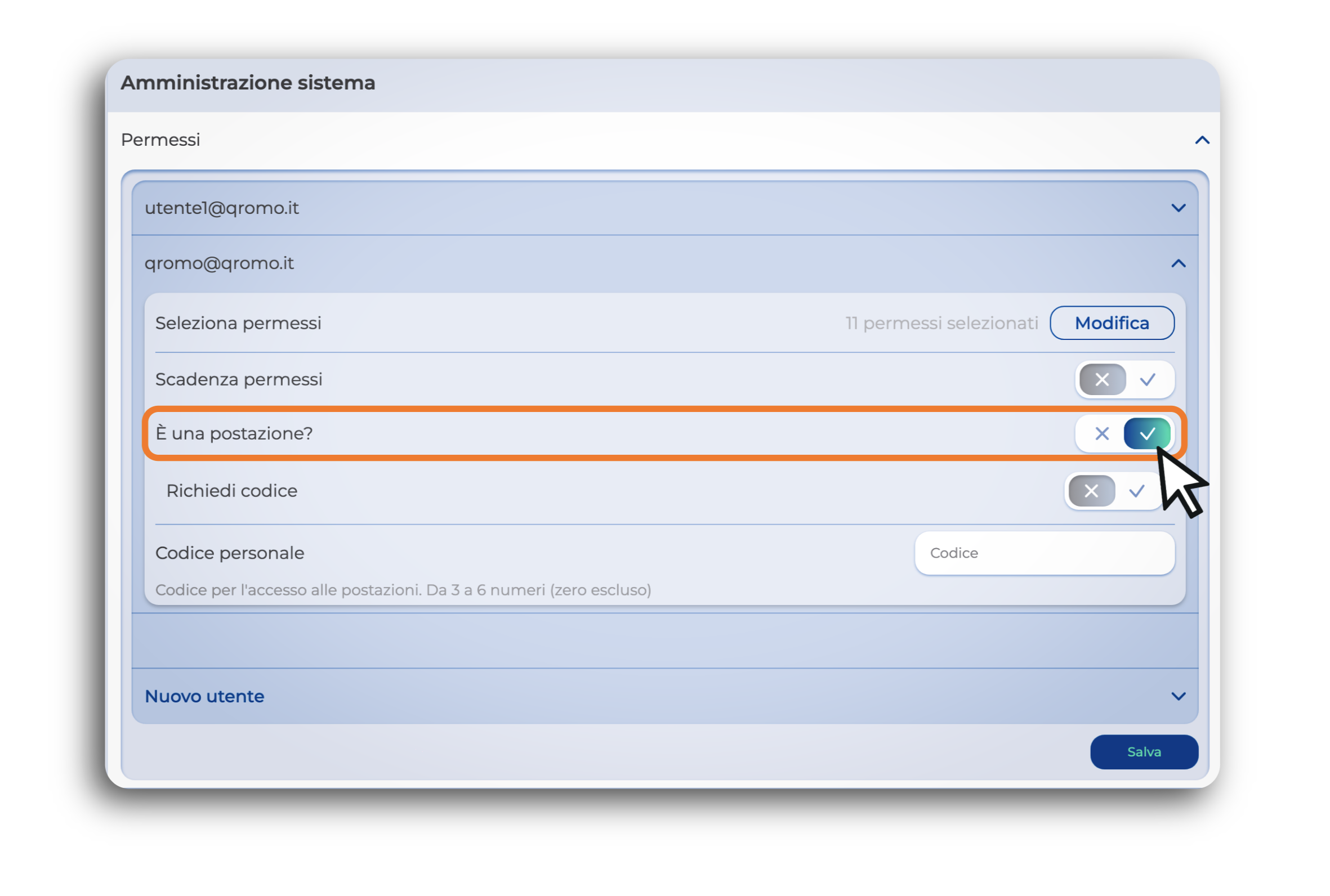 Nota bene: L'utente a cui hai abilitato "Postazione" deve già avere i permessi di amministrazione. Per la guida sui permessi CLICCA QUI