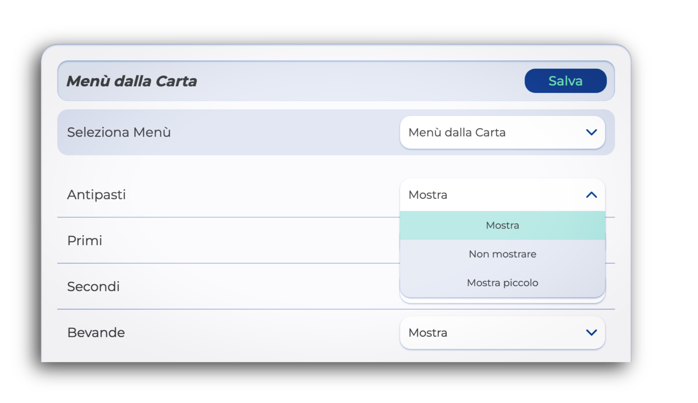 5. Seleziona per ogni menù le categorie da mostrare. Hai tre scelte: