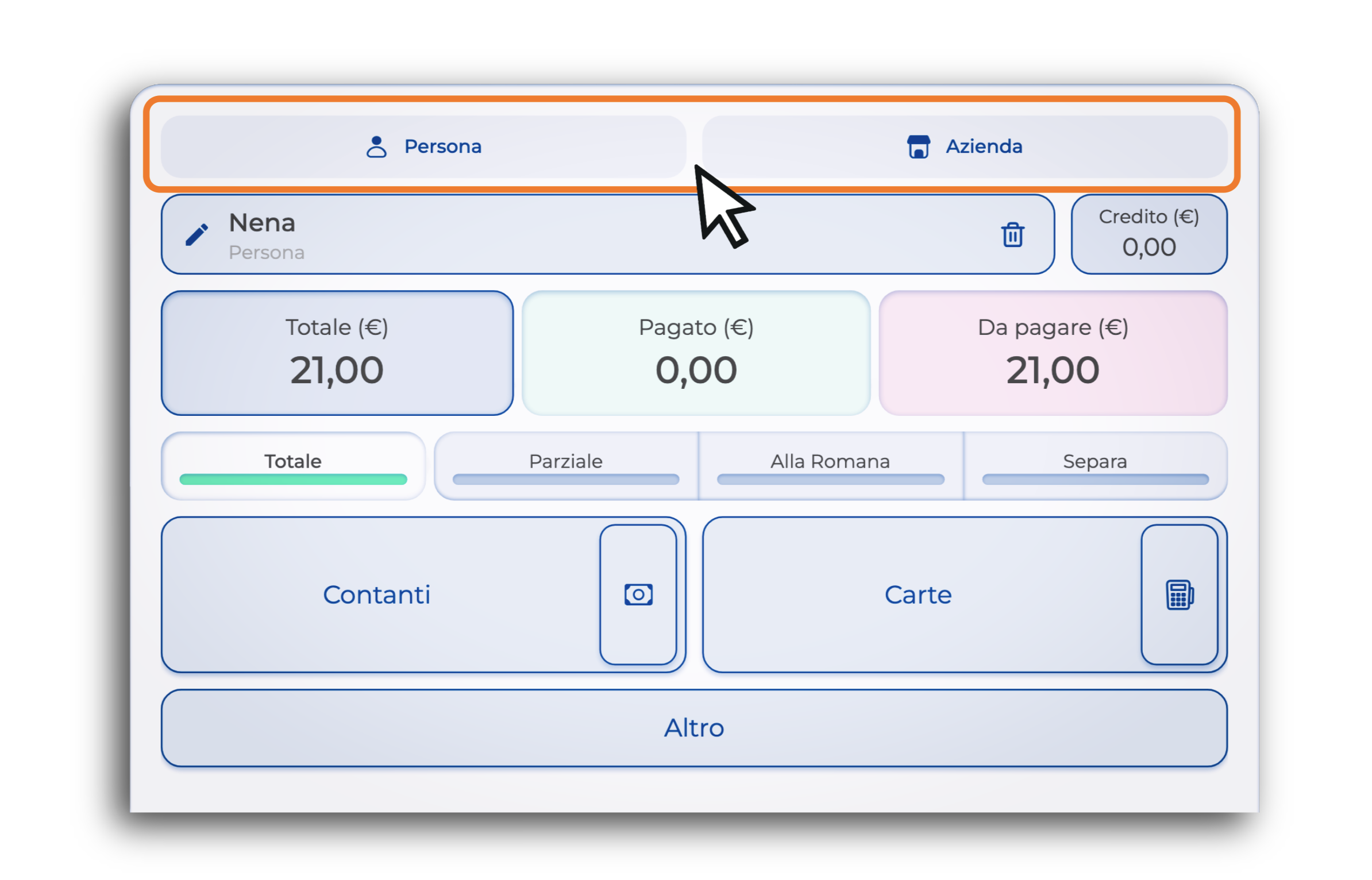 2. Con il tasto di scambio scegli Persona o Azienda.
