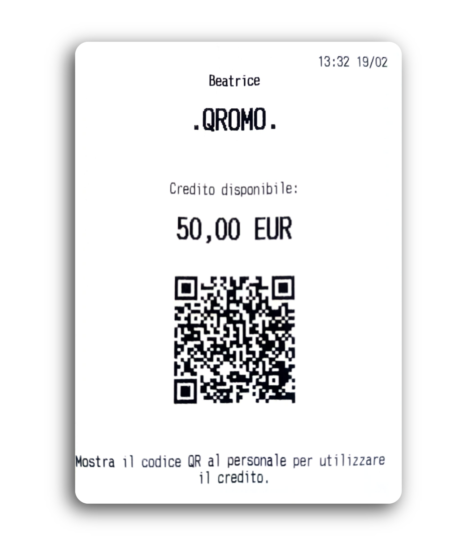 Stampa il credito appena aggiunto per consegnare al cliente la sua copia con il QR Code che riporta al suo saldo aggiornato.
